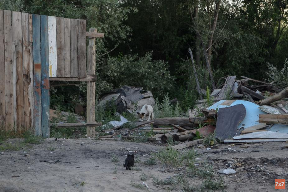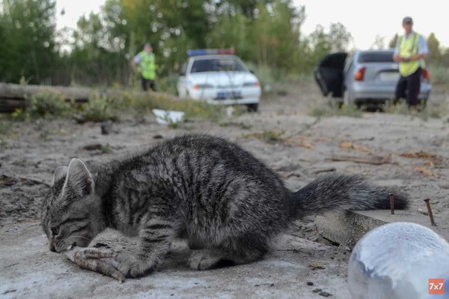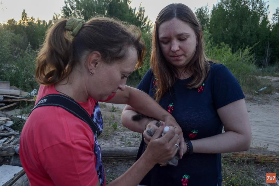 Свидетелями такой встречи корреспонденты «7х7» стали 21 июня. Сначала к волонтерам выбежали пять котят и взрослая кошка, которые с жадностью накинулись на сосиски и воду. Затем стали выбегать другие животные. В общей сложности волонтеры покормили в тот день около 20 кошек и 15 собак.