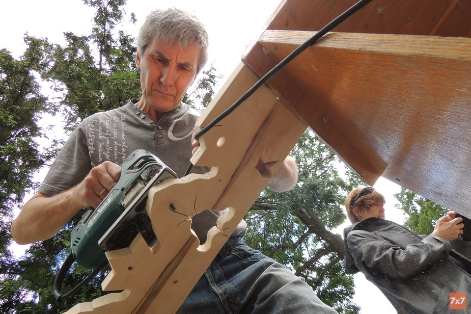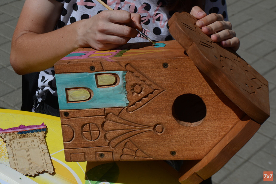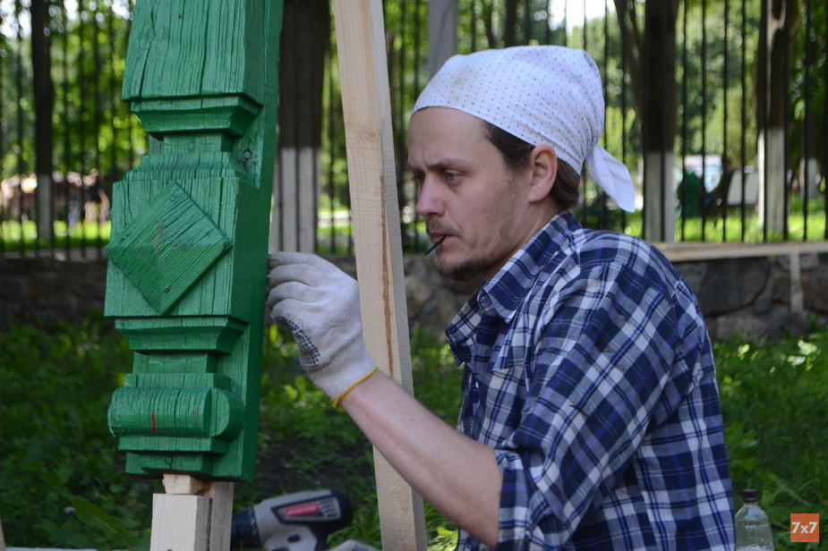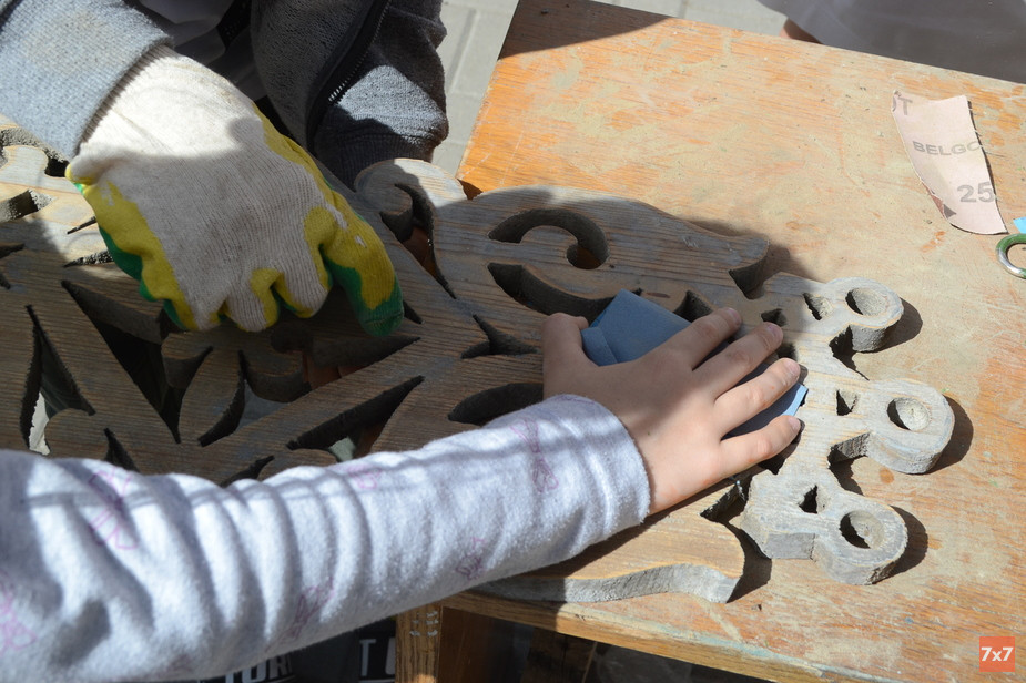 На открытии фестиваля для горожан провели мастер-классы, на которых дети и взрослые могли шкурить фрагменты старинной резьбы, разукрашивать образцы и выпиливать декоративную резьбу электролобзиком.