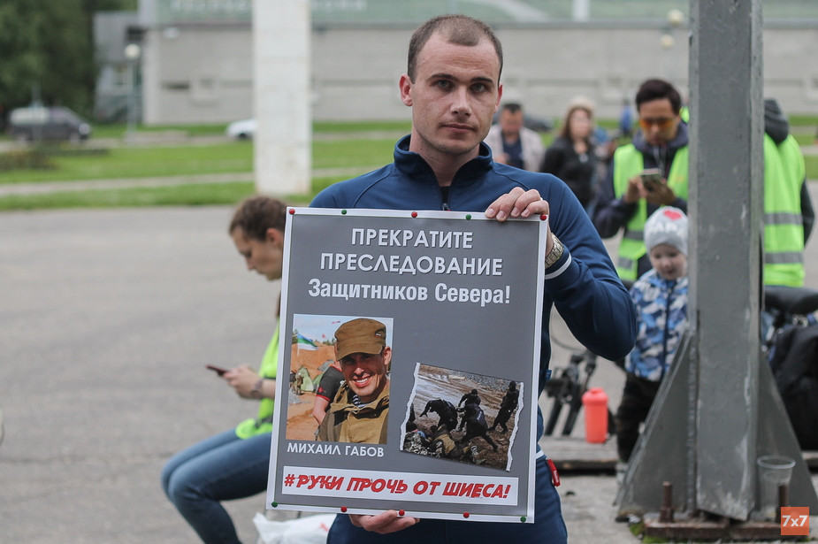 — Творится беззаконие в отношении этих людей. Я сам участник этих действий и боюсь, что меня так же могут привлечь по какой-нибудь статье. У меня здесь [на одиночном пикете] все соответствует законодательству, как и весь Шиеский протест. Там все строго по закону. В первую очередь мы пробиваем информационную блокаду, потому что кроме "7x7" и еще нескольких изданий, про это никто не пишет, — прокомментировал пикет не назвавший своей фамилии активист Дмитрий.