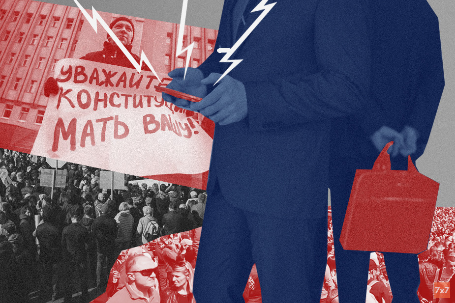 В марте 2019 года в России начал действовать «закон Клишаса». По нему людей могут наказывать за неуважение к власти. Дела за критику властей и бранные выражения в адрес чиновников заведены уже на 30 человек. При этом матерные фразы и неприятные комментарии — не единственная причина, по которой активисты и общественники могут разозлить представителей власти. Это могут быть и выступления в футболках с надписями, акции против повышения пенсионного возраста и «дестабилизация обстановки». «7x7» представляет подборку жалоб региональных чиновников и депутатов на активистов.