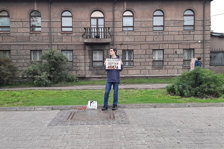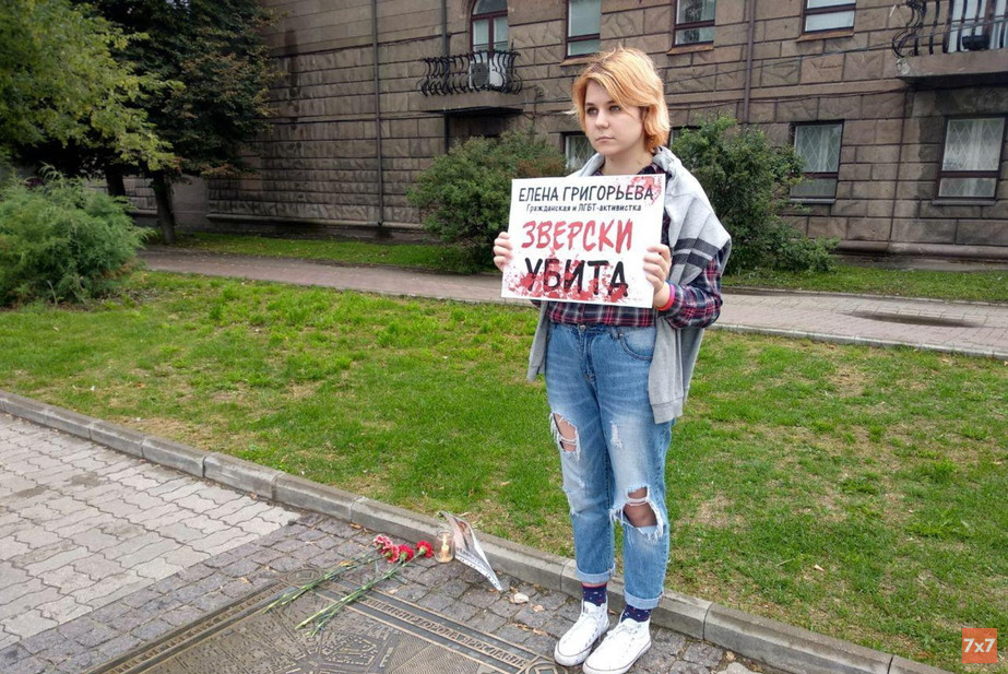 Елена Григорьева родилась в Великом Новгороде, ей был 41 год. Она участвовала в протестных акциях оппозиции, зоозащитном движении, протестовала против нарушения прав ЛГБТ-сообщества, пыток, войны на Украине, выступала в защиту дальнобойщиков и жертв домашнего насилия. Ее последней акцией стал пикет 18 июля в Петербурге в защиту крымских татар. 21 июля ее нашли мертвой недалеко от ее дома. Как сообщило издание «Фонтанка.ру»: «по факту убийства задержан 40-летний житель Башкортостана. В отношении него возбуждено уголовное дело».