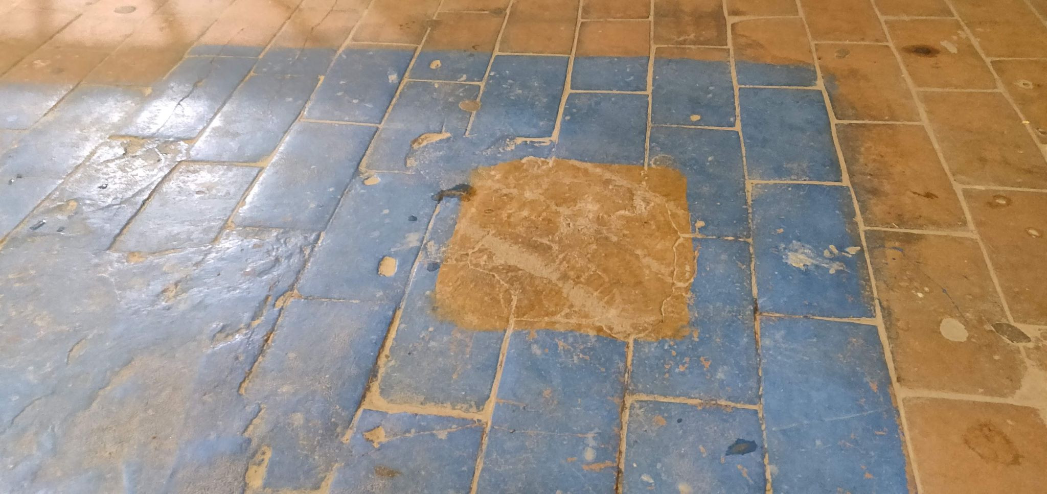 В одном из подъездов в доме на Пролетарской в Йошкар-Оле треснула напольная плитка. На просьбу починить плитку управляющая компания «Благоустройство-1» никак не отреагировала. Только после письменного обращения активиста Юрия Медякова в Госжилнадзор республики в подъезде появились рабочие, они залили выбоины цементом и покрасили это место синей краской, хотя пол был коричневым.