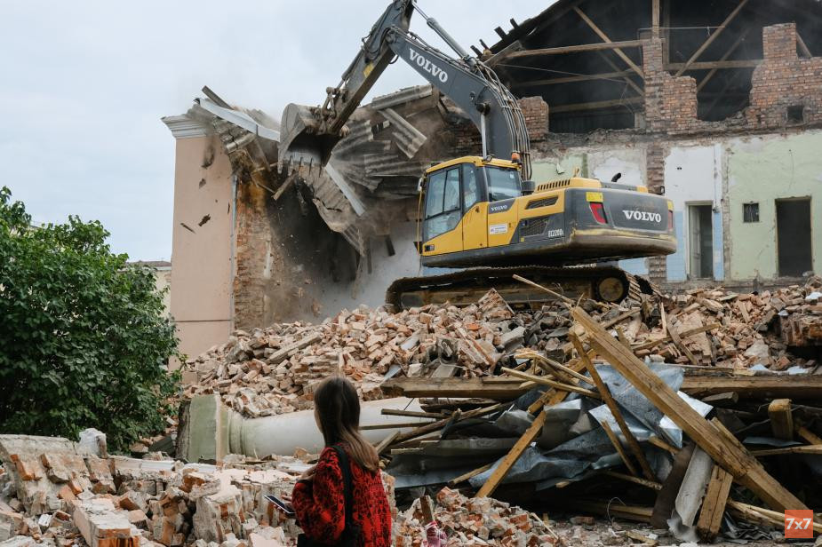 Через два дня здание частично снесли. Набережная Александра Невского лишилась портика в стиле советского классицизма с четырьмя колоннами и фронтоном. Большая часть здания осталась нетронутой.