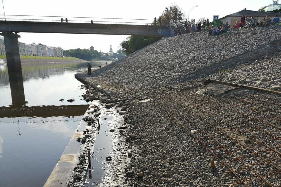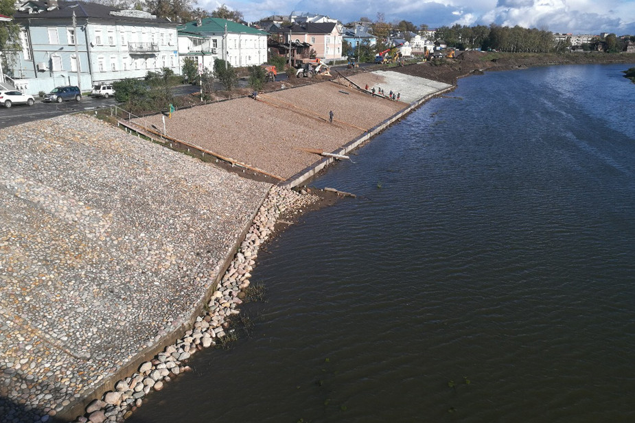Территория, на которой ведутся работы, попадает и в зону объектов археологического наследия. За процедурами должен следить археолог, но все земляные работы были проведены зимой. Вести полноценные исследования, пока грунт мерзлый, почти невозможно. За месяц зимы было разрыто 2,8 километра, а затем пришло половодье и стало смывать этот грунт. Если пройти по набережной сейчас, то можно увидеть остатки глиняной керамики и кирпичей, которые весной сразу попадали в реку.