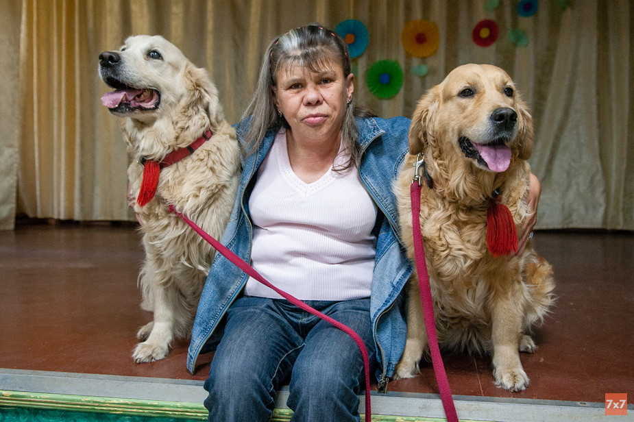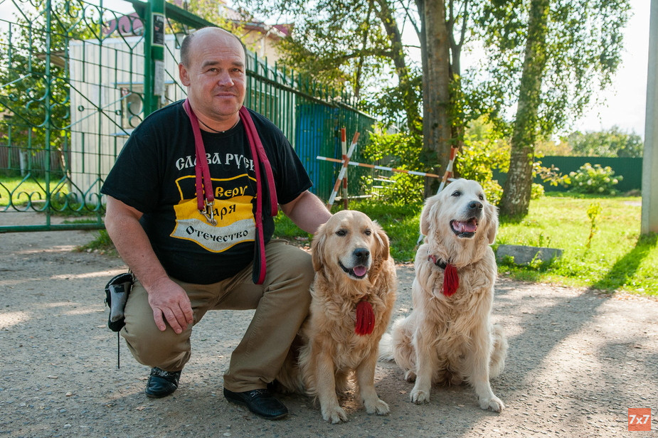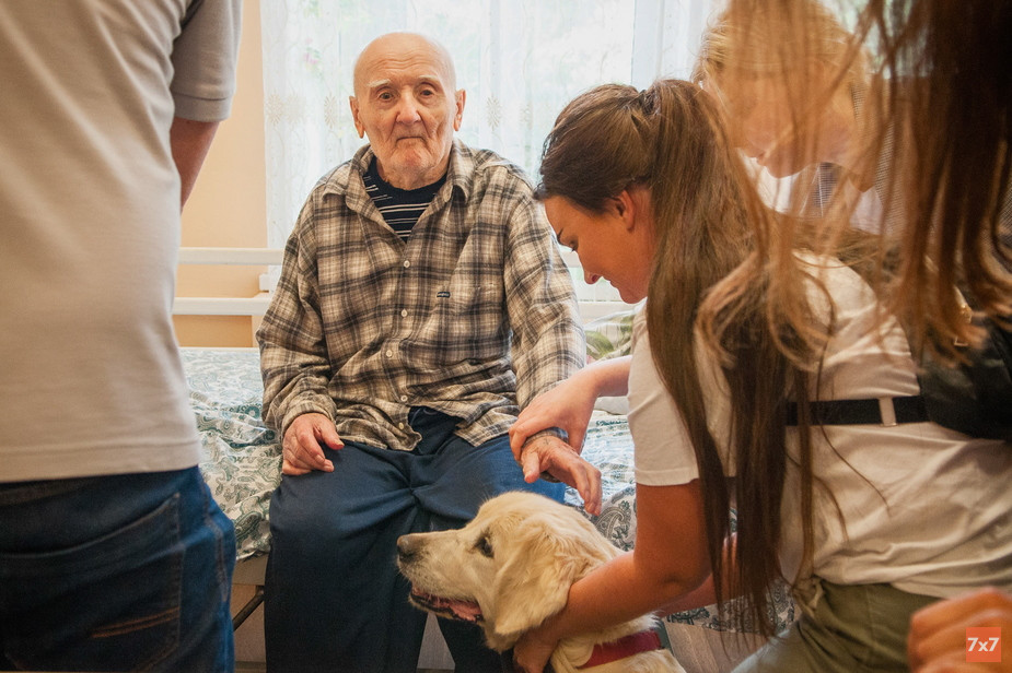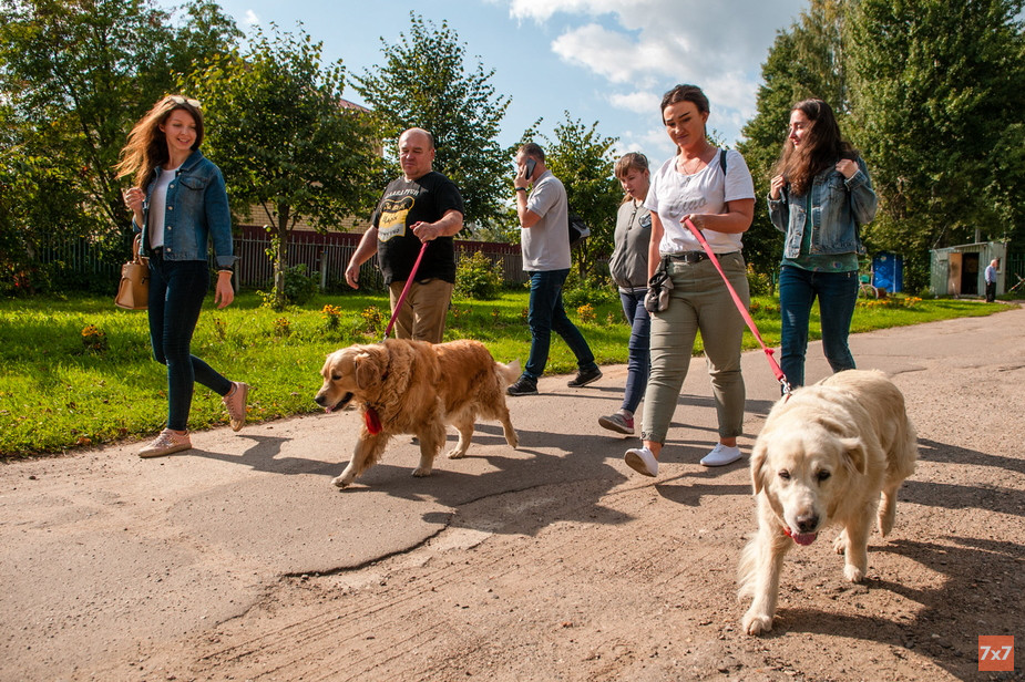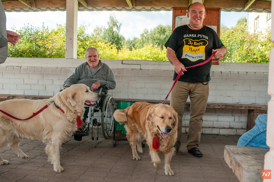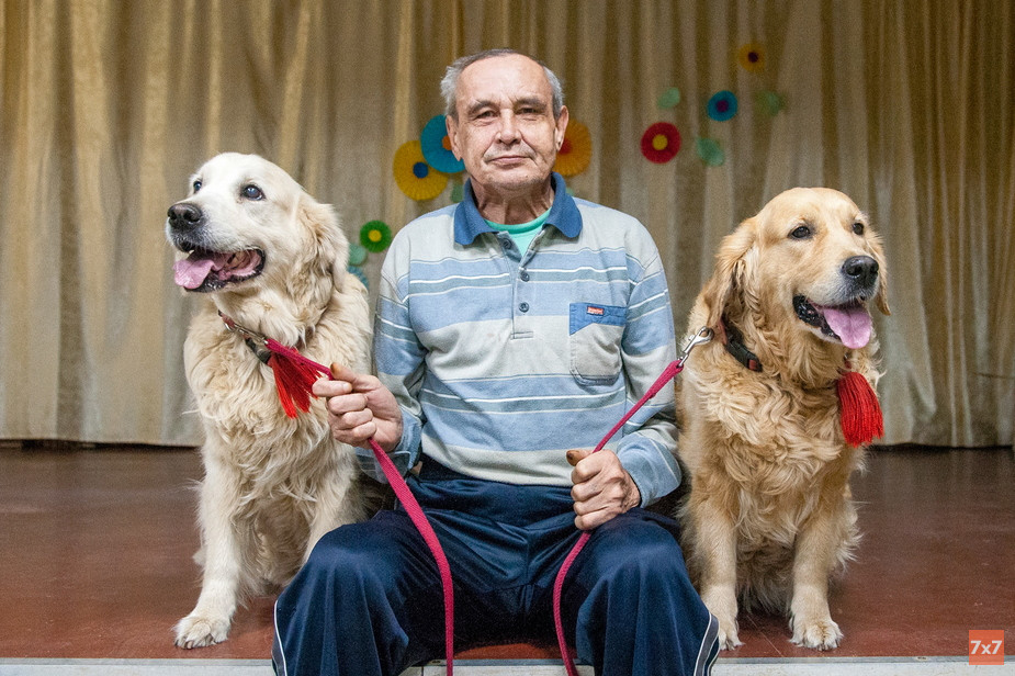 Хозяин собак-терапевтов — Владимир Варнавин — заводчик золотистых ретриверов. Обычно в канистерапии участвуют три его собаки, но на этот раз общаться с бабушками поехали только две — Пима и ее дочка Нелли. Третья недавно ощенилась и пока находится «в декретном отпуске».
