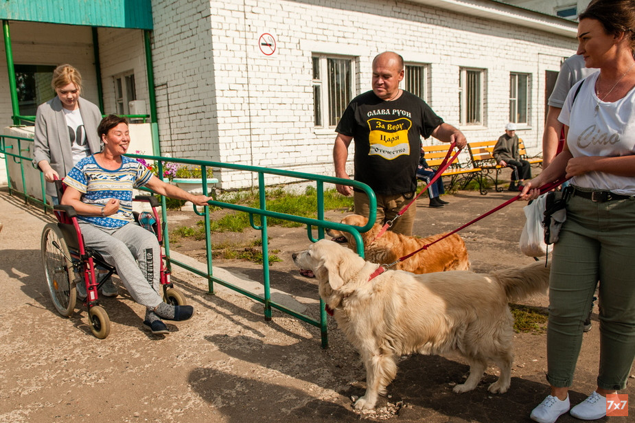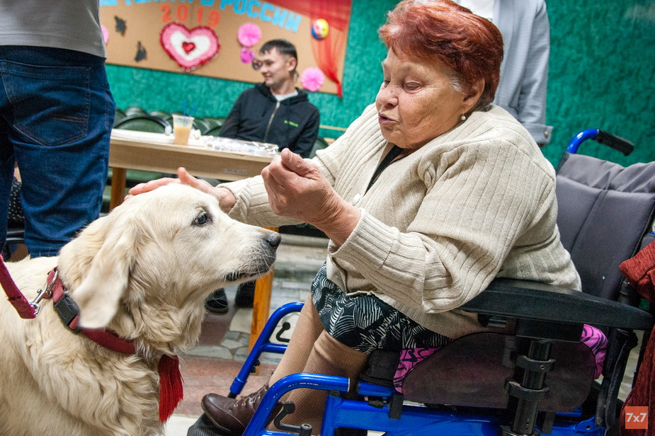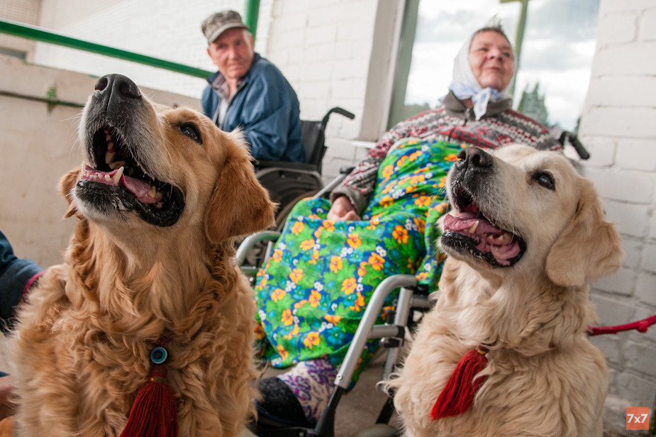 Команда костромской группы фонда «Старость в радость» с 2018 года проводит в домах престарелых сеансы канистерапии — реабилитации с помощью собак, которая помогает развивать умственные и эмоциональные способности, улучшает моторику и усиливает эффект реабилитации. 29 августа три девушки, решившие стать волонтерами, приехали в Заволжский дом-интернат Костромы и помогли его обитателям пообщаться с двумя очаровательными собаками.