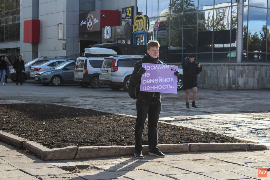 В Ижевске 28 сентября прошла серия одиночных пикетов в поддержку принятия в России закона о домашнем насилии. Они были приурочены к всероссийской акции «Марш сестер».