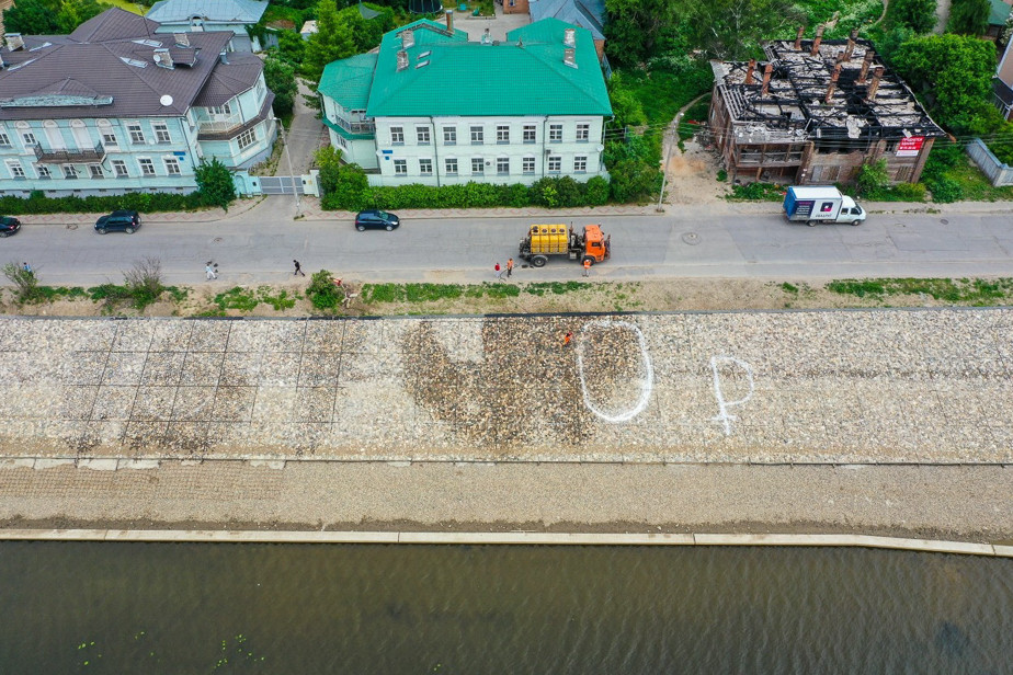 Ранним утром 11 июня на недавно забетонированном участке набережной в центре Вологды появилась огромная надпись: «265 181 410 ₽». Цифры означали стоимость производимых работ. Их нарисовали защитники зеленых берегов, чтобы привлечь внимание горожан к проблемам бетонирования. Уже через несколько часов коммунальщики со шлангами смывали неудобные цифры. Новости в местных СМИ и посты в соцсетях в тот день вышли под заголовком: «Администрация города отмывает 265 миллионов на набережной».