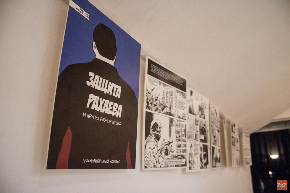 Рядом с книгой соседствует комикс куратора выставки, одного из первых комиксистов России Алексея Иорша «Защита Рахаева». Его документальный комикс рассказывает историю экс-начальника уголовного розыска г. Черкесска, капитана полиции Руслана Рахаева. В октябре 2012 года его родственники обратились в фонд «Общественный вердикт» из-за нарушения его прав.