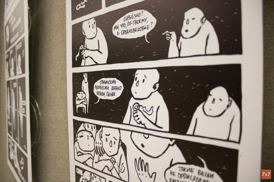 В культурном центре «Пятый этаж» 5 октября открылась выставка документальных комиксов «Новый активизм». Это серия работ художников при фонде «Общественный вердикт» из Москвы, Киева, Махачкалы, Санкт-Петербурга и Новочеркасска. Сюжеты комиксов основаны на делах, которые ведут юристы правозащитных организаций. В них отражены проблемам пыток в колониях, важности человеческого достоинства и значимости каждой жизни. Как проходило открытие выставки — в репортаже «7x7».