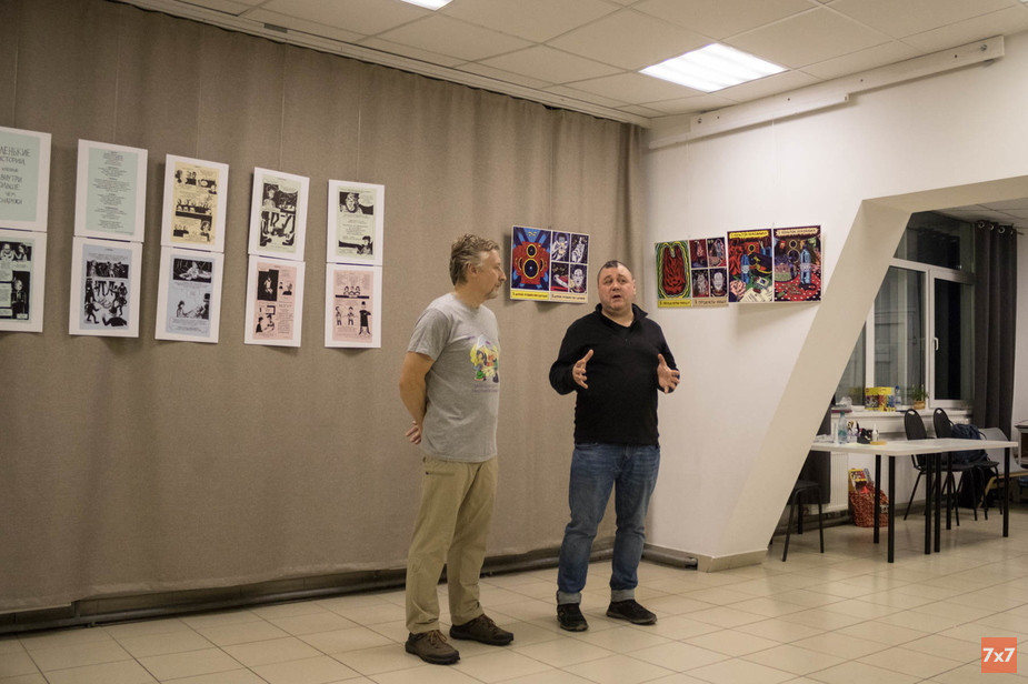 В 17:10 Алексей Иорш вместе с еще одним куратором выставки, специалистом по мониторингу фонда «Общественный вердикт» Андреем Прибыловым, поприветствовали посетителей. Художник Алексей Иорш рассказал, что ранее уже приезжал в Киров с комиксами в рамках проекта Respect с мастер-классами для молодежи и преподавателей. Тогда рассказывали о том, как комикс может улучшать взаимопонимание между людьми.