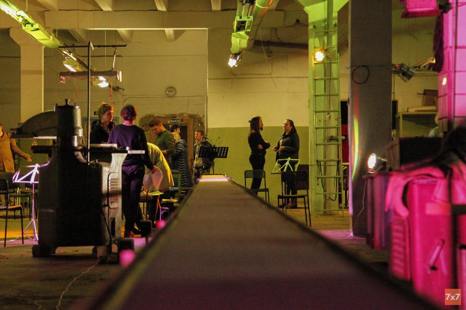 — Здесь до сих пор работают люди, которым эти воспоминания дороги. Здесь было очень интересно убираться — здесь есть большие кабинеты, заваленные какими-то старыми документами, бумагами. Дыхание жизни тут все-таки есть, просто оно какое-то истлевшее. Мы решили сделать такую партитуру, в которой есть документальные тексты — это небольшие воспоминания реальных людей. Плюс в библиотеке мы смотрели много книг об этой фабрике, плюс какие-то артикулы, которые мы находили в документах. Мы решили все это соединить с современной академической музыкой. И еще мы не обходим стороной само пространство, в этом смысле машины все равно будут звучать, — рассказала «7х7» драматург Ксения Савельева.