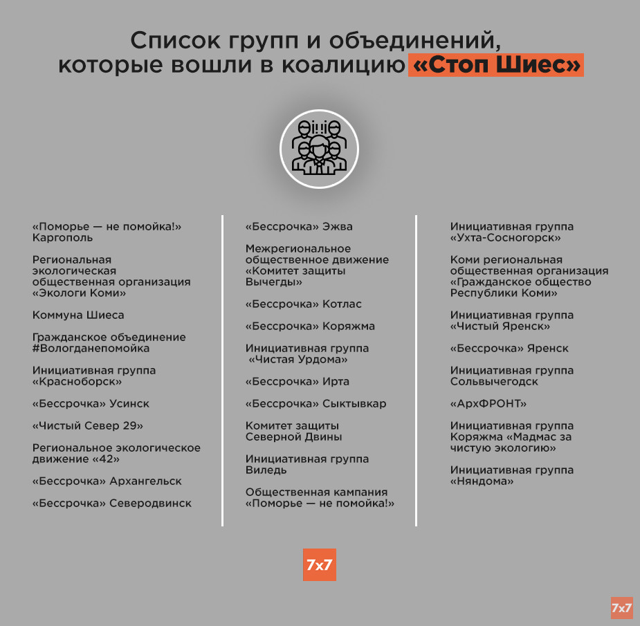 29 объединений и групп экоактивистов создали коалицию «Стоп Шиес», которая будет добиваться закрытия полигона для мусора на железнодорожной станции Шиес в Архангельской области. Такое решение они приняли на собрании 12 октября в Котласе. Также экоактивисты призвали запретить перевозить мусор из региона в регион, внедрить систему сортировки и переработки отходов. “7х7” публикует список членов коалиции.