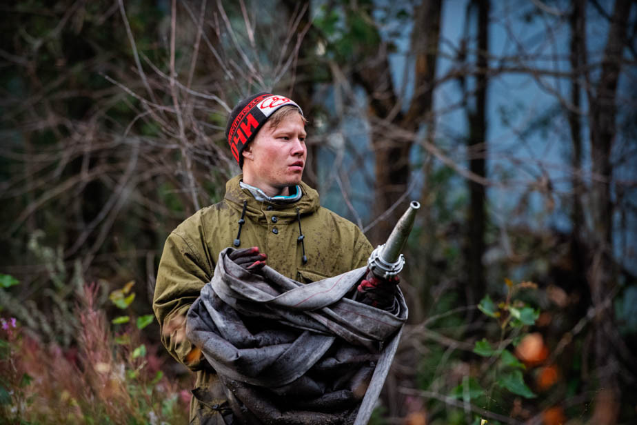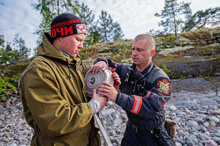 Для стажировки Юра выбрал летний лагерь добровольных пожарных на Ладоге. На протяжении 10 лет общество добровольных лесных пожарных и специалисты из Greenpeace России следят за национальным парком «Ладожские шхеры» в Карелии. Его территория состоит из множества островов. Активисты патрулируют ее, обучаются навыкам и тактикам тушения, при необходимости тушат пожары и работают с местным населением. Когда на одном из островов начинается пожар, добровольцы оперативно собирают команду и на лодках отправляются его тушить. Иногда они делают это быстрее профессиональных пожарных, потому что те часто ограничены в финансах. Но добровольцы стараются работать в связке с государственными службами – от этого зависит скорость тушения. В случаях больших пожаров власти обращаются за помощью к добровольцам.