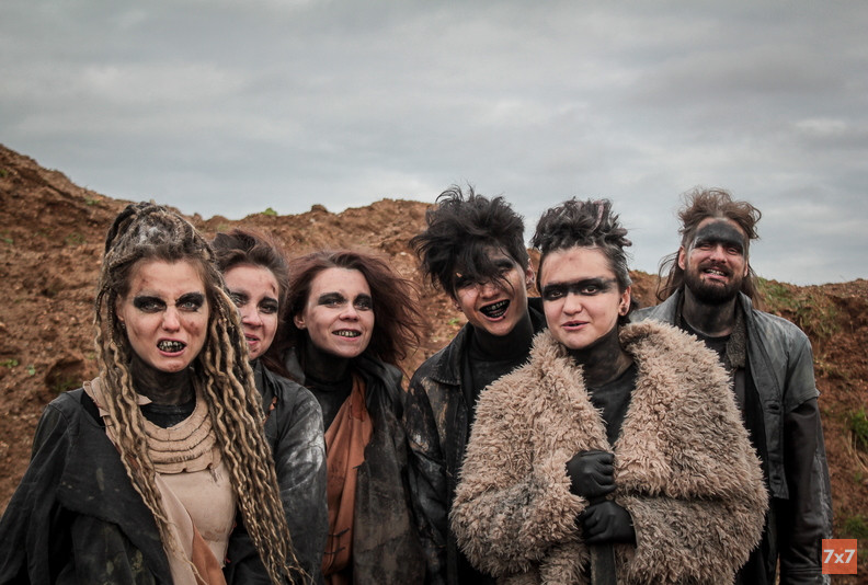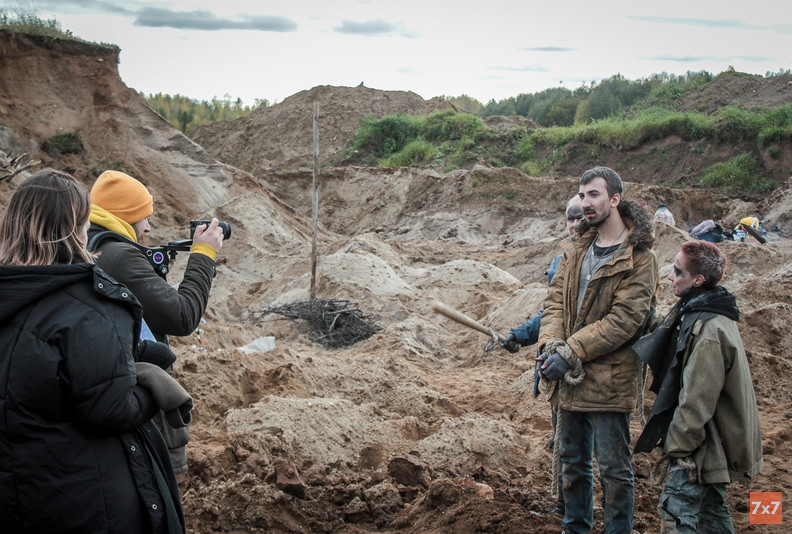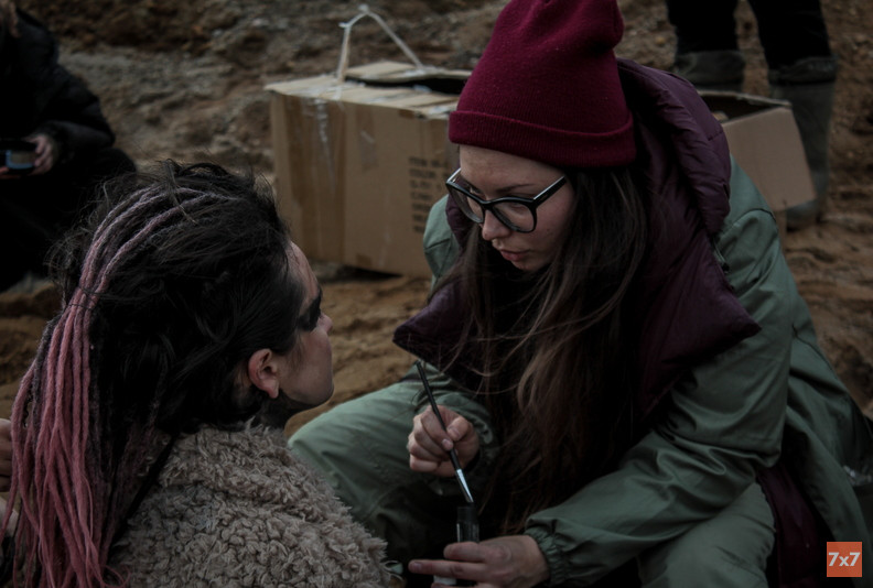 Утром 29 сентября в квартире художницы по костюмам Кристины Овсянкиной собралось десять человек. В последний съемочный день клипа никто из них не казался взволнованным: они шутили, начесывали волосы и ждали, когда приедут машины. Кристина подбирала им одежду и готовила к выходу. Кто-то взял автомат, кто-то биту, кто-то мачете и ножи, они примеряют грязную одежду и красят лица в черный цвет. В сегодняшних сценах актеры будут изображать дикарей, выживших после экологического апокалипсиса.
