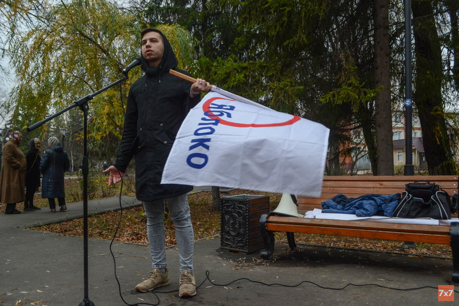 Активист партии «Яблоко» Тимофей Щербаков обратил внимание, что неухоженный сквер Машиностроителей, в котором проходил митинг, — пример отношения власти к людям:
