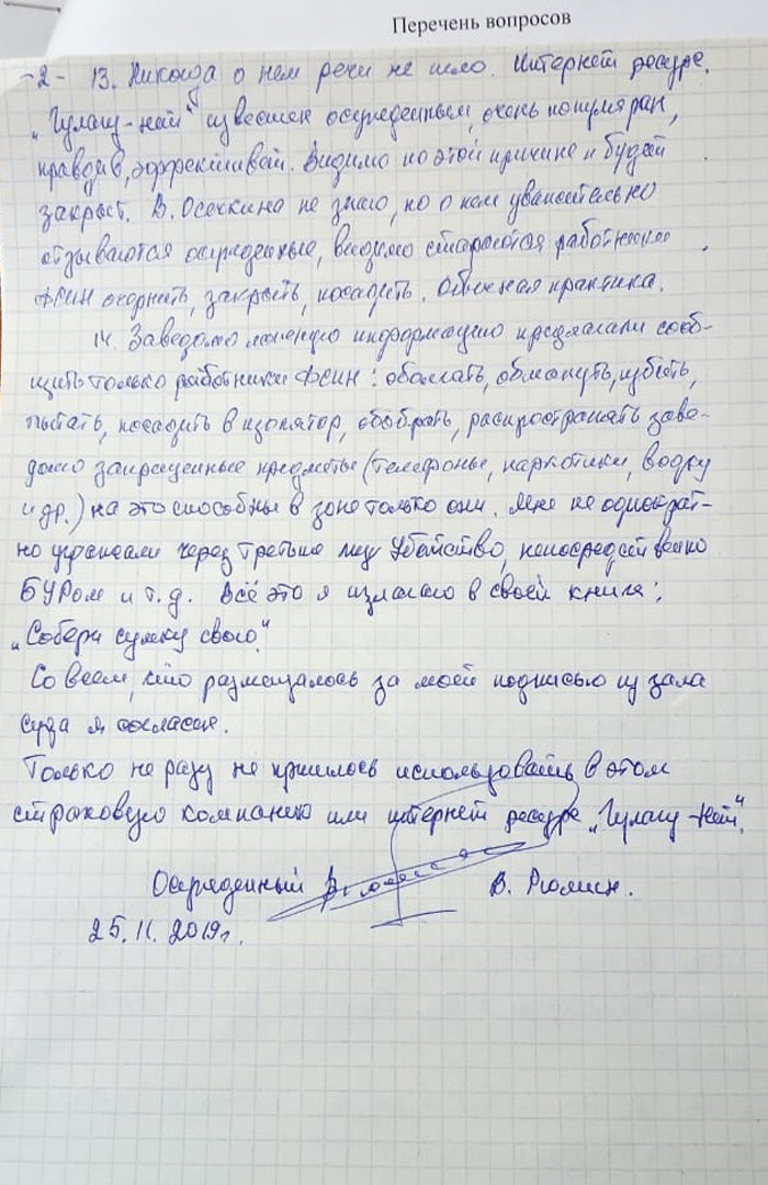 Анкетирование заключенных Кутузов назвал провокацией, которая направлена и против самого института страхования, и против Gulagu.net. «7x7» направит запрос в УФСИН по Рязанской области.