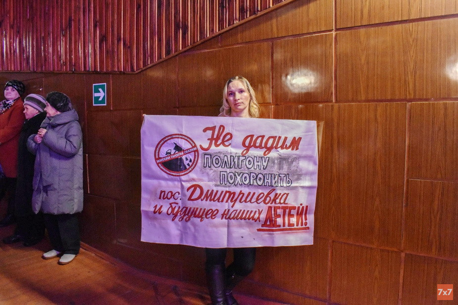 — Ничего нет страшнее разгневанных пенсионерок Дмитриевки! — шутит стоящая тут же предприниматель Ольга Четырина. По ее словам, молодежь опасается потерять место работы за выступления против свалки, поэтому в основном приходят люди старшего поколения. Зал рассчитан на 550 человек, все места заняты, и люди становятся в проходах.