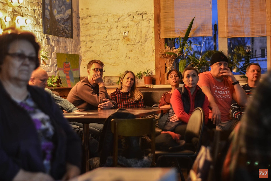 В Agriculture собрались жители деревень Суна и Янишполе, активные горожане, молодые ученые, журналисты - все те, кто дежурил в лесу, не давая технике и лесорубам уничтожить их бор и, конечно, составители книги: биолог Петрозаводского университета Евгения Марковская, руководитель природоохранной организации "СПОК" Ольга Ильина, журналист Валерий Поташов и жительница деревни Суны Татьяна Ромахина.