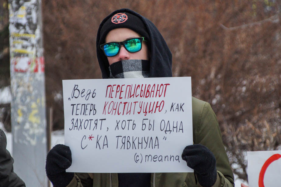 Представитель анархистского движения в Пензе Наталья (фамилию девушка просила не указывать) продолжила тему «Сети»*. Она держала в руках один из плакатов против правок в Конституцию.