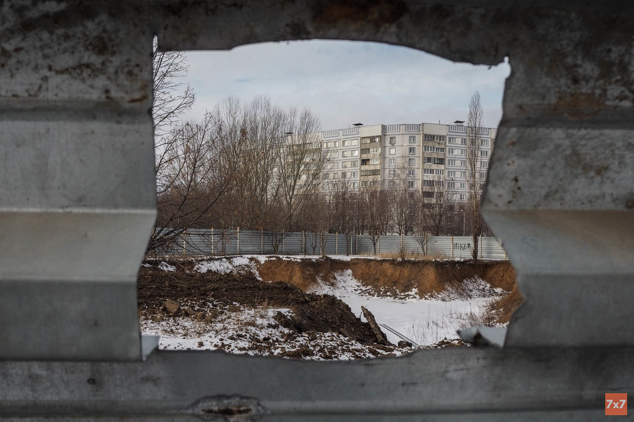 Корреспондент «7x7» побывал в парке Морской славы и убедился, что котлован засыпан, но только частично. Яма уменьшилась примерно наполовину, искореженный забор остался на своем месте. На нем появилось много надписей, к примеру: «Бро, твори добро!».
