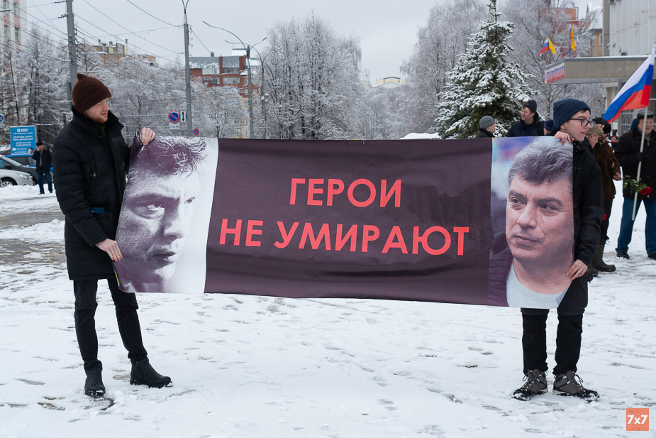 В Кирове в память о Борисе Немцове прошли две акции: пикет у здания администрации города и марш от нее до Вечного огня на набережной Грина.