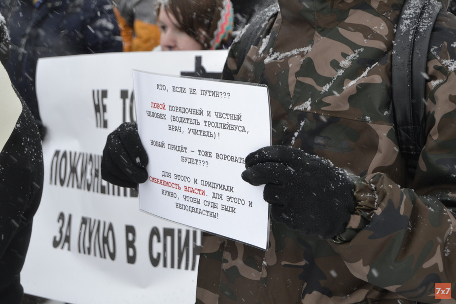 — Просто майорам ФСБ захотелось стать полковниками. Они готовы ломать судьбы людей ради лишней звездочки, ради кормушки. Мы протестуем против политических репрессий, но самое главное, что они продолжаются. Репрессиями являются и преследования экоактивистов, защитников Шиеса, уголовные дела заведены на многих. А сколько административных дел было заведено! Это тоже репрессии. Власть боится народа, — высказался Юфряков.