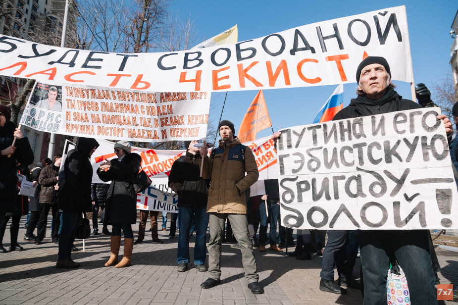 Жители российских городов 29 февраля вышли на акции памяти убитого оппозиционного политика Бориса Немцова. Как прошли митинги, пикеты и шествия и где городские власти не позволили их провести в выбранных организаторами местах - в обзоре «7х7».