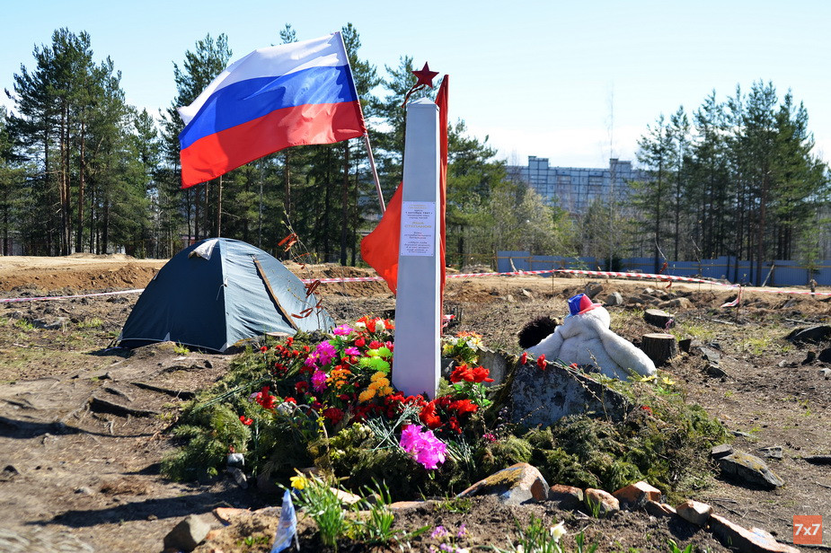В День Победы люди пришли к стеле в Петрозаводске вместе с семьями, возложили цветы, вспомнили истории о своих погибших родственниках и спели военные песни. Многие удивлялись, как в 75-ю годовщину победы городская администрация дала разрешение на строительство именно в «Каменном бору» и почему для детсада не выбрали другое место.