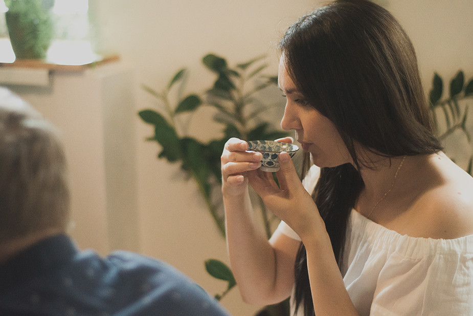 Мы завариваем гостям первые три чашки, объясняем, как и что правильно делать, в какую руку брать посуду. Дальше оставляем людей, и они уже все делают сами. Но у нас есть и курсы чайного мастерства, где все долго и правильно. Это 20 незабываемых часов, во время которых мы учим держать ровно спину и заваривать чай. Ровная спина, положение тела и работа с телом — это первое, с чего мы начинаем, когда садимся заваривать чай.