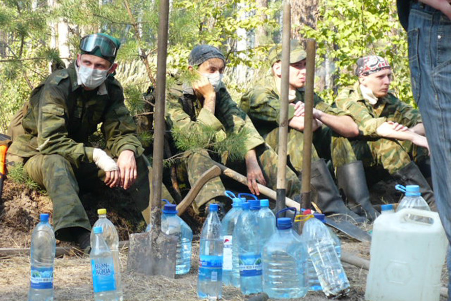 Пожарные сначала не понимали, что с нами делать. Но потом уже начали нас инструктировать, разбивали на группы и даже снаряжали ранцами с водой, чтобы мы заливали тлеющую траву и деревья.