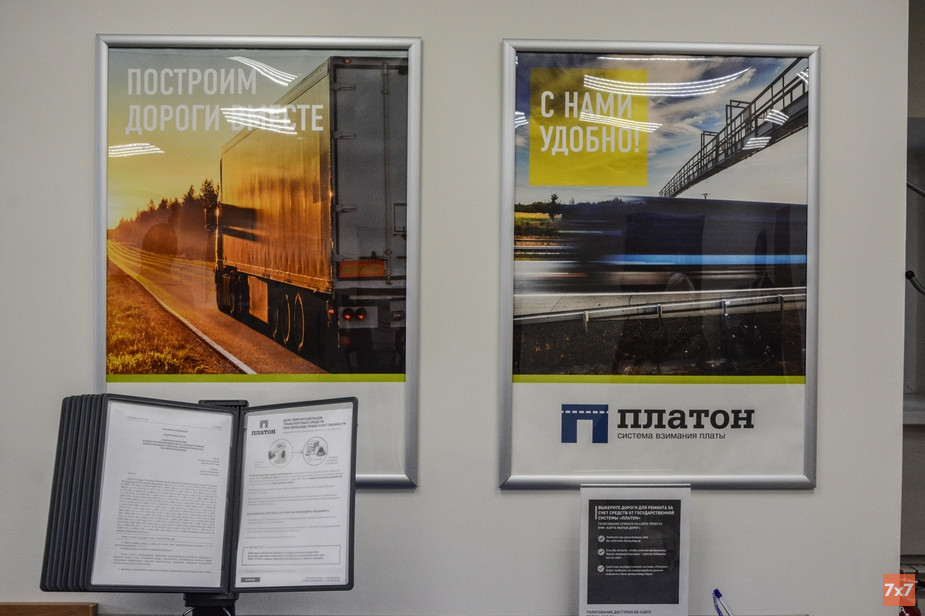 Еще двое перевозчиков в этот момент пришли в офис, чтобы получить новый прибор учета «Платона» вместо просроченного. За езду с поломанным тахографом им пришли штрафы по 5 тыс. руб., но, если не получить новый прибор, система продолжает штрафовать. Они пояснили «7х7», что не против «Платона»: