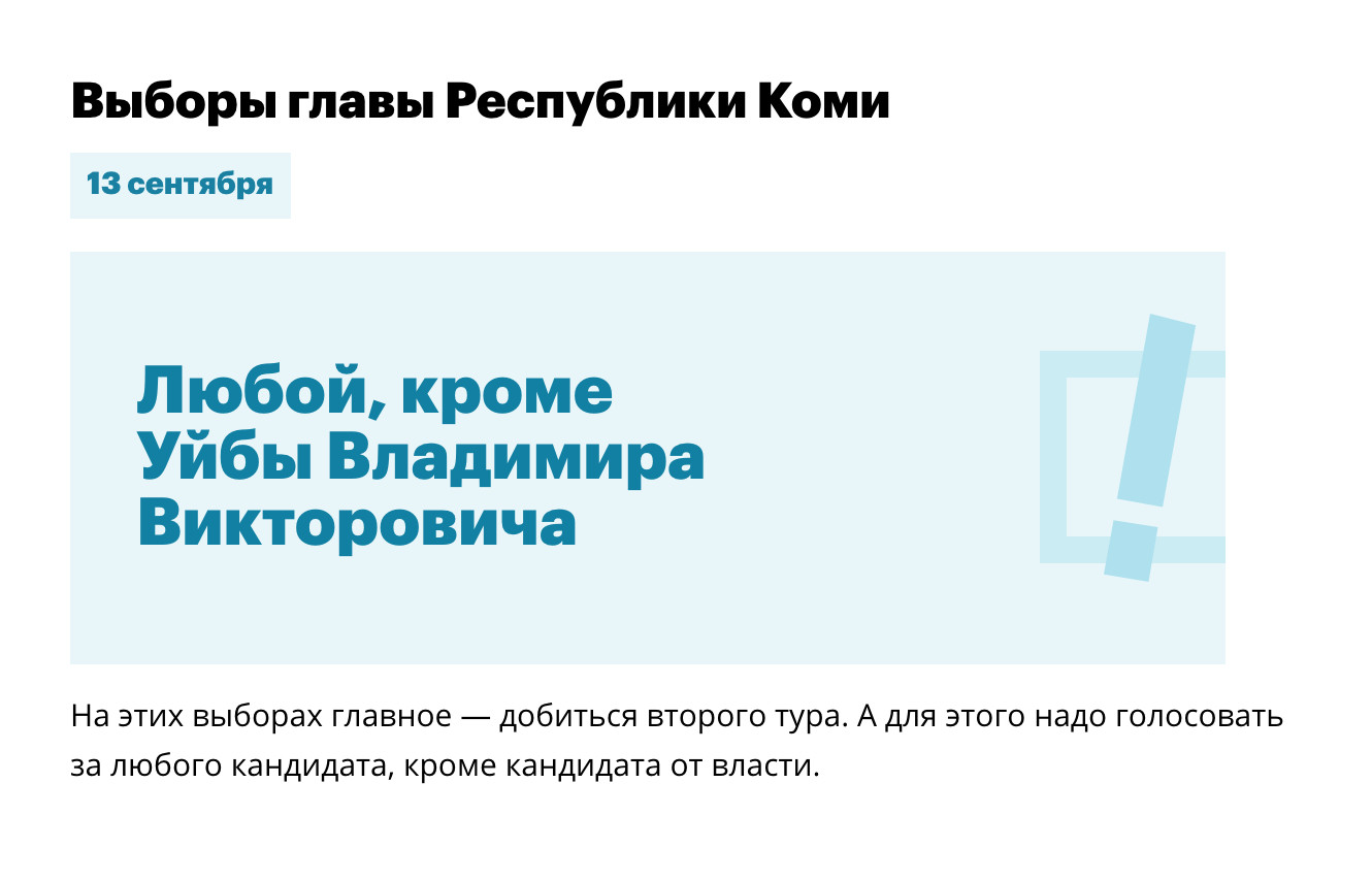 — Они просили дать рекомендации только по одномандатникам. На выборах главы Коми они просто предлагают голосовать против Уйбы. Знаю, что они не рассматривали кандидатов от партии «Родина», потому что там деньги Евгения Пригожина.