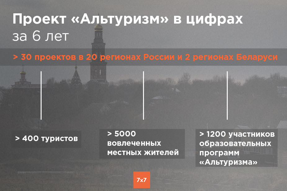 — Я не знаю, как это можно сделать без них. Люди, которые готовы платить за такие путешествия, уже обладают проактивным мышлением. И если поместить их в определенные условия, в которых они вместе с местными жителями делают что-то важное для этого места, то при таких условиях возникает магия. Проактивное мышление альтуристов распыляется на людей, которые находятся вместе в одном пространстве. Поэтому без них невозможно. Почему, например, [фестиваль восстановления исторической среды] «Том Сойер Фест» успешно работает только в более-менее крупных городах, а выходить на деревни и маленькие города у них не получается? Потому что там недостаточное количество проактивных людей и они не могут влиять своей массой на других. Так что на малых территориях непонятно, как по-другому, если не привозить других людей.