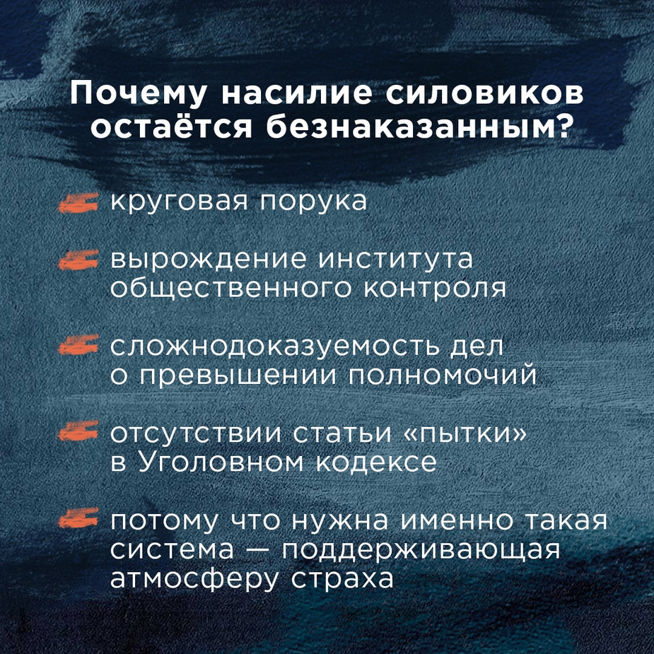 — Есть вполне сложившаяся позиция и у правоохранительных органов, и в обществе: не надо церемониться с преступником. И полутонов тут нет, методы работы слепо тиражируются. Среди погибших есть люди, совершившие убийство, и люди, задержанные за пьянство. Есть те, кто торговал наркотиками, и те, кто матерился в общественном месте. Есть люди, чье преступление доказано приговорами, а есть только предполагаемые преступники.
