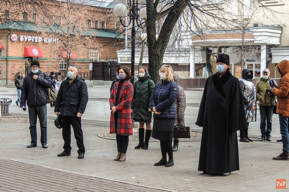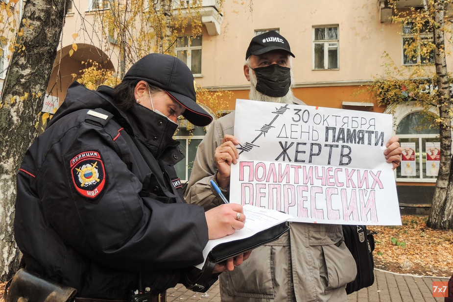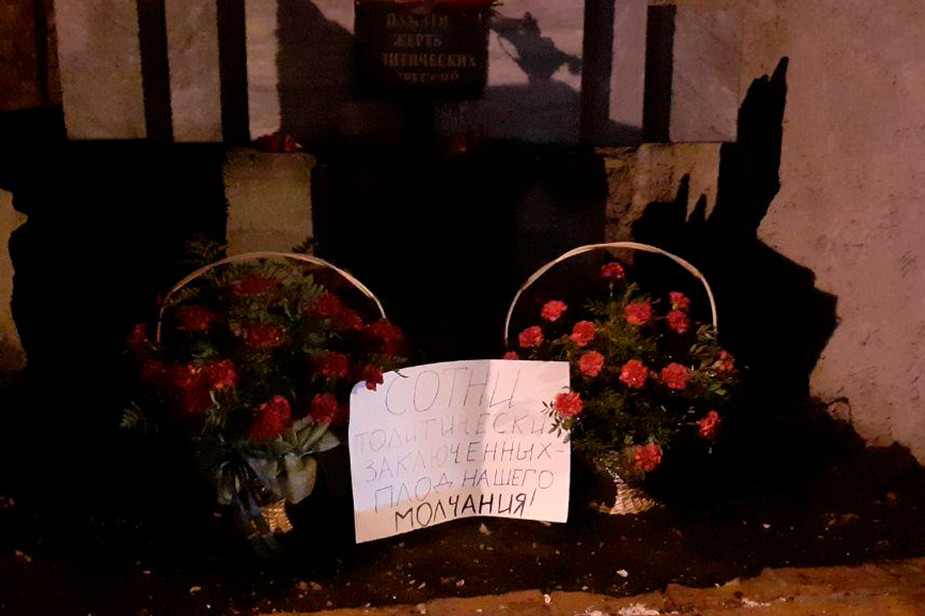 Почтить память репрессированных и возложить цветы пришло порядка 20 человек. У памятника «Покаяние» в одиночном пикете стоял правозащитник Юрий Вобликов. Он держал плакат «30 октября День памяти жертв политических репрессий». За полтора часа к нему дважды подходили полицейские, которые взяли письменное объяснение.