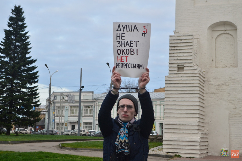 В центре Ярославля одиночный пикет в память о жертвах политических репрессий провел ЛГБТ-активист Ярослав Сироткин. Он встал возле Знаменской башни в наручниках с плакатом «Душа не знает оков. Нет репрессиям!». Пикет продлился с 16:00 до 16:30, Ярослав отвечал на вопросы людей о своем пикете.