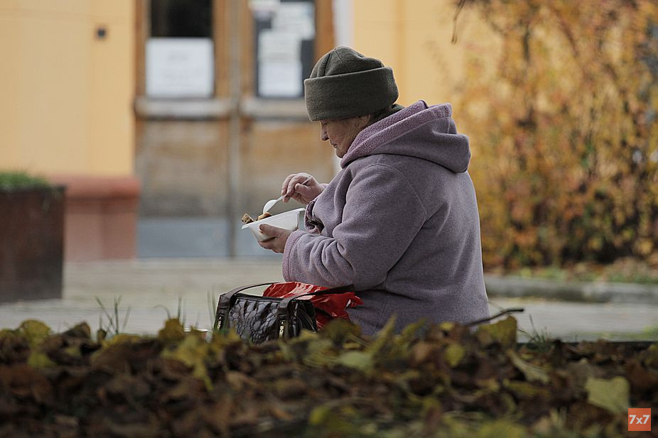 Недалеко от палатки, в сквере, стоит бывшая военнослужащая, а теперь инвалид II группы Любовь. Она уже взяла свою порцию и ждет окончания раздачи, чтобы взять еще одну, если останется. Эту порцию она хочет отнести своей лежачей матери. Ей 93, она тоже инвалид, а еще ветеран труда и труженик тыла. Любовь говорит, что ее мать радуется, как ребенок, этой еде и это единственное, чем она может ее порадовать.