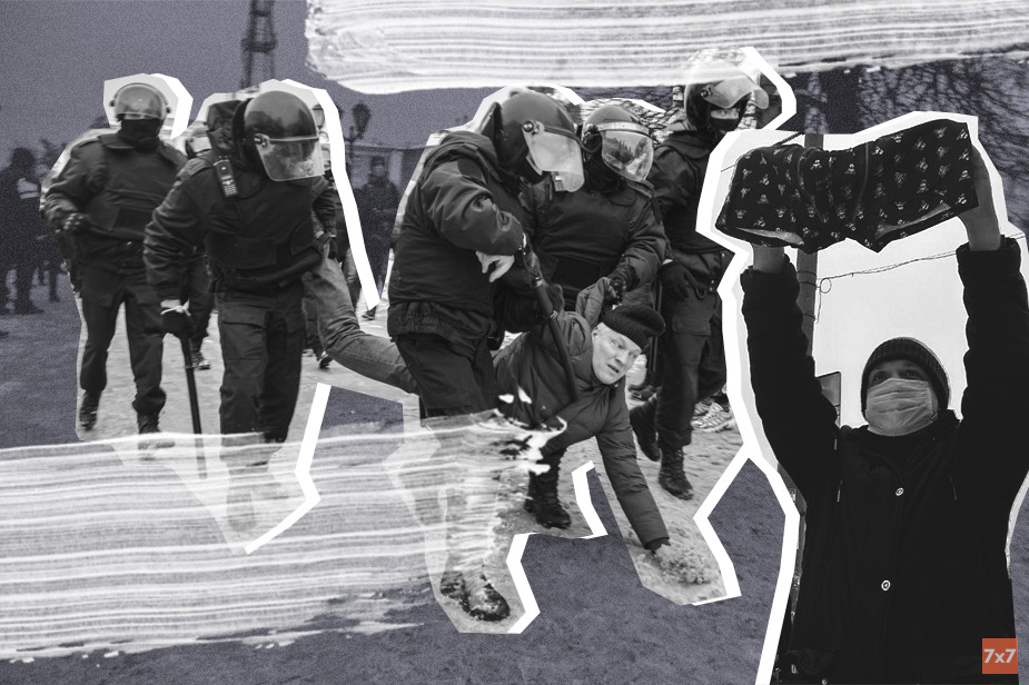 Количество участников акций, которые 23 января вышли поддержать политика Алексея Навального, разнится: в разных городах их число составляет от нескольких сотен до нескольких тысяч. По данным "ОВД-Инфо", к 19:00 было задержано более 1950 человек. Весь день за ходом акций следили журналисты "7х7". Вот семь самых интересных снимков, которые сделали во время митингов и шествий корреспонденты издания.