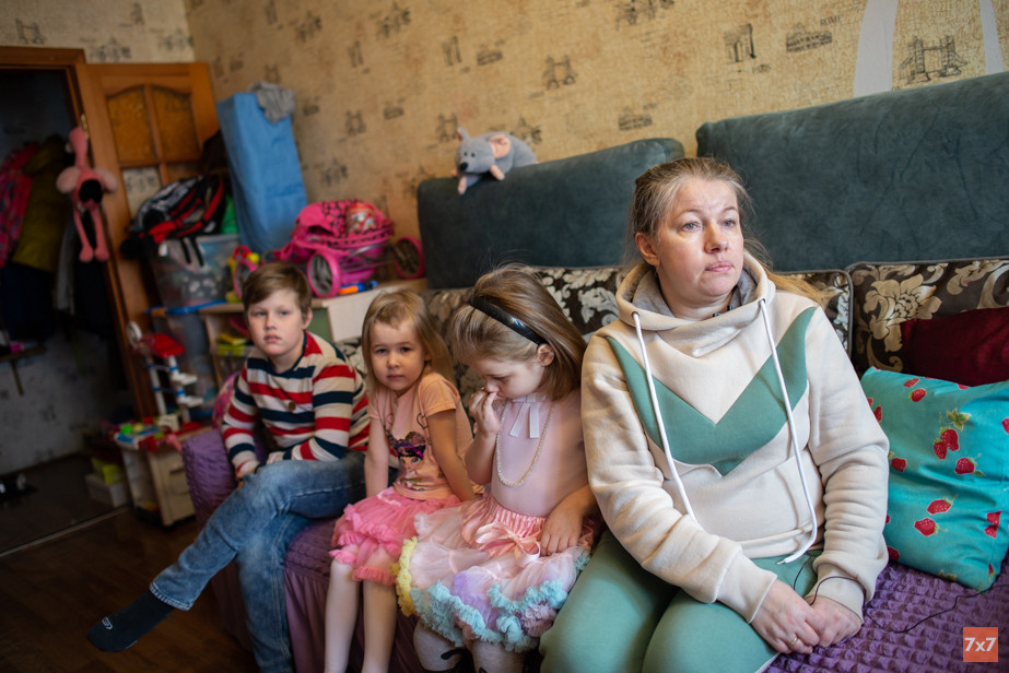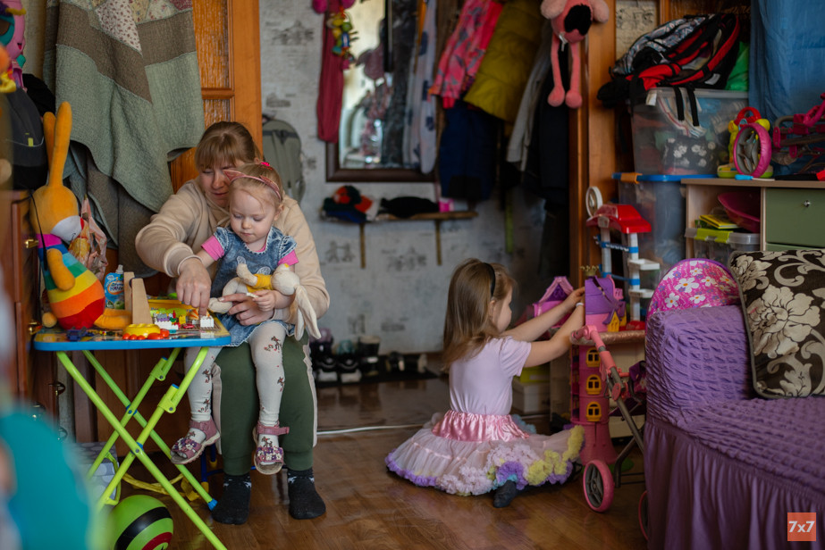 Рядом с Натальей сидит ее подруга Лида и помогает с детьми: кому дать попить, кому баранку, кому колготки подтянуть. Лида начала помогать Наталье вскоре после того, как та создала группу в соцсетях: