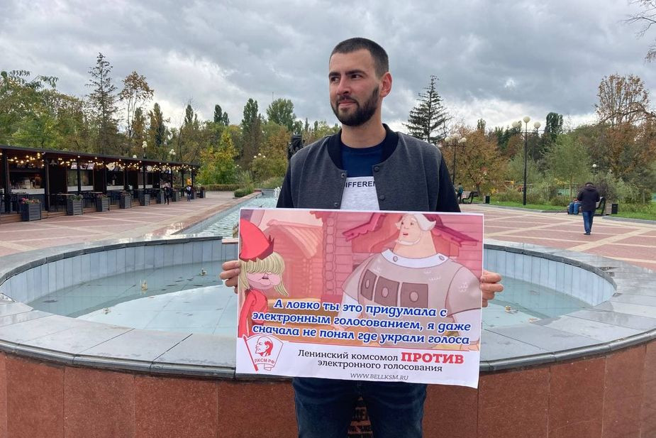 В Белгороде семеро коммунистов вышли на одиночные пикеты против применения электронного голосования. Члены партии также выразили несогласие с итогами выборов. Так, член КПРФ и депутат поселкового собрания Разумного Екатерина Долгова вышла на одиночный пикет с плакатом-мемом из фильма «ДНБ».