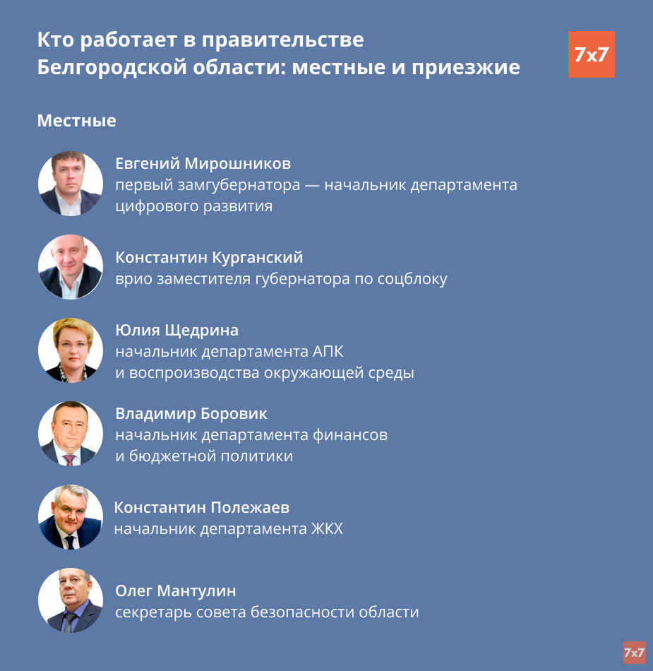 В ноябре 2020 года Владимир Путин назначил врио губернатора Белгородской области Вячеслава Гладкова — чиновника, работавшего в Пензенской области, Ставрополье и Севастополе. Он сменил на посту Евгения Савченко, который управлял регионом 27 лет и выстроил четкую структуру правительства: его заместители сменялись редко и в основном делали карьеру в Белгородской области.