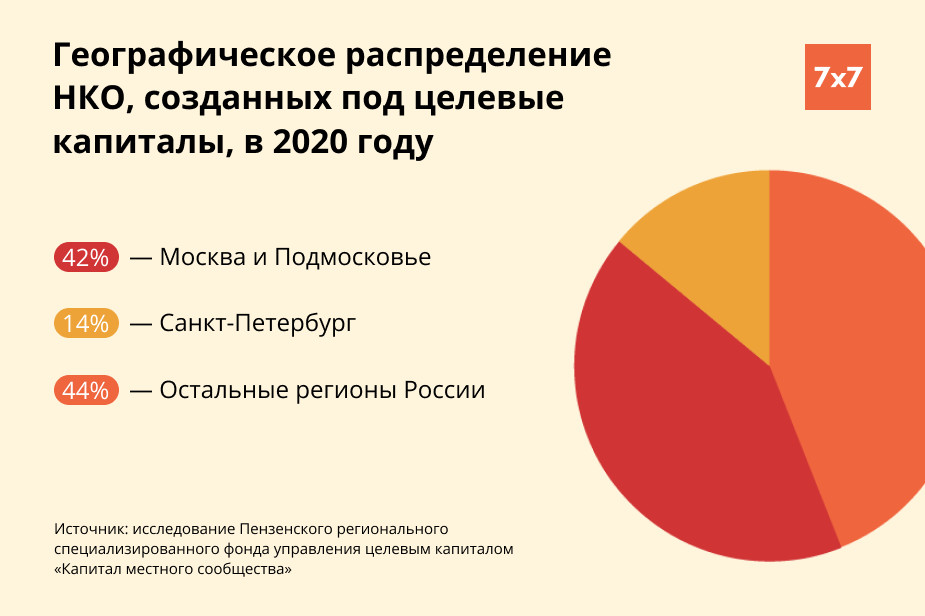 В 2017 году доля региональных НКО с целевыми капиталами составляла всего четверть от общего числа эндаументов в России. При этом на Москву и Подмосковье приходилось 58%.