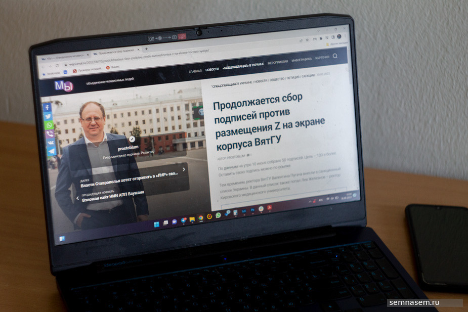 Share links to My’s texts appear in Kirov Telegram channels, opposition chats. But not only like-minded people see them — the media outlet’s website has been hacked by those who do not like the media’s subject several times.
