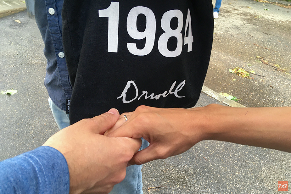 На улице дождь. Все выходят из зала суда, фотографируются вместе и прощаются.