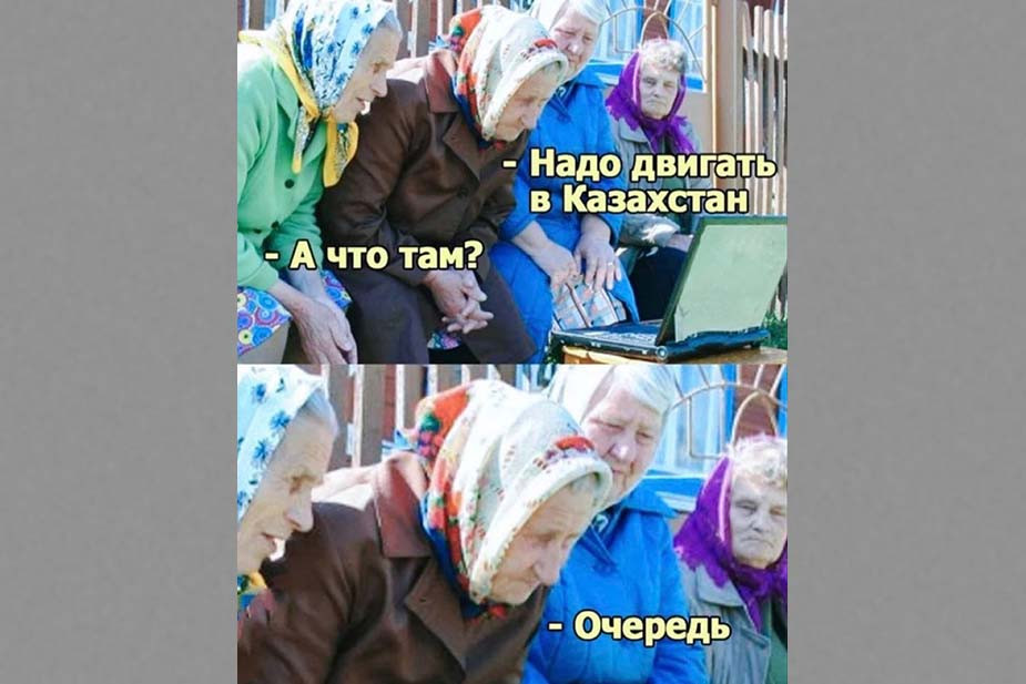 Еще пример современного анекдота: «Ты где? - В Караганде”. Он отсылает к детской шутке и к ситуации звонка из военкомата [человеку, который уехал от мобилизации в Казахстан]. Тоже двойное прочтение.