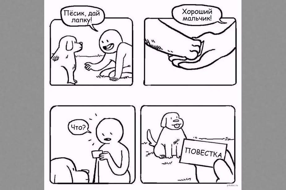 Пример мема: “Не бери в руки повестку”. Это повторяющаяся информация, но бисоциации здесь нет.