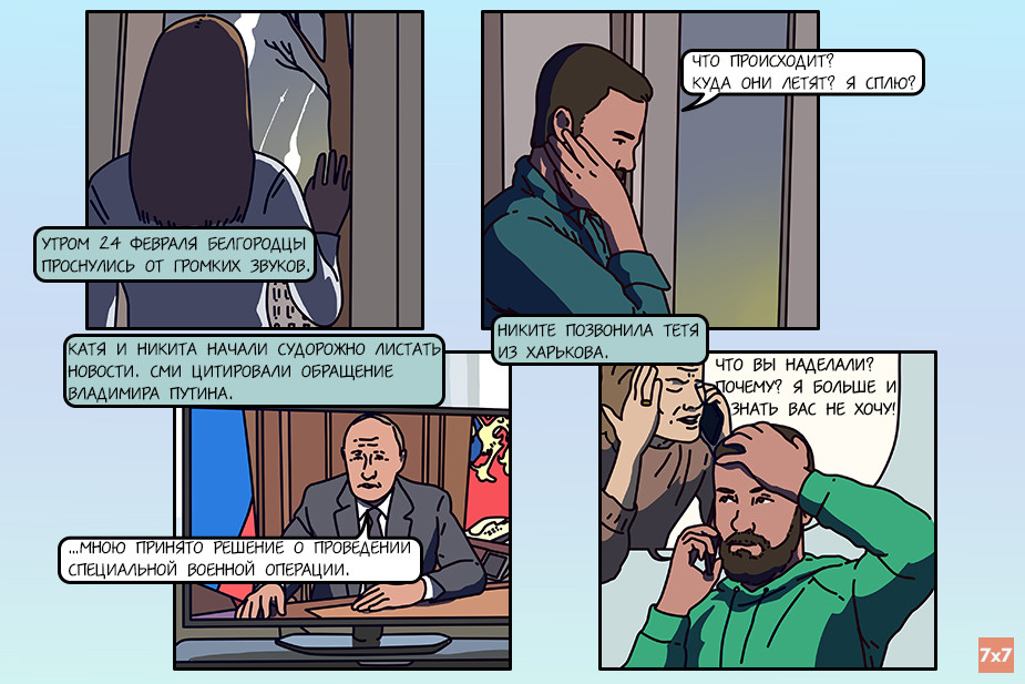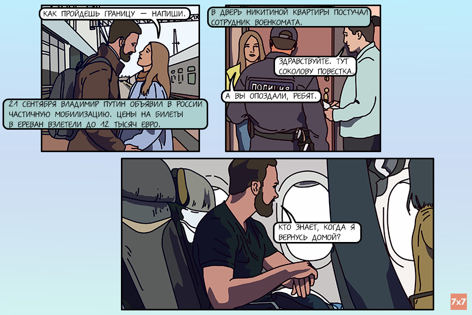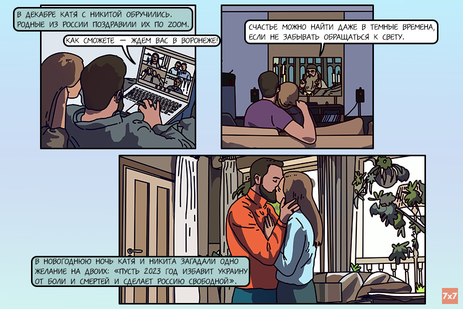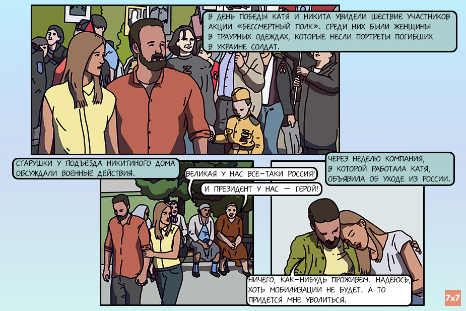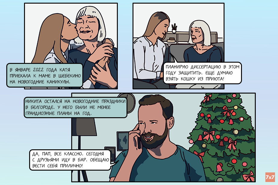 Редакция интернет-журнала «7х7» и команда медиа «Фреймы» (онлайн-галерея важных новостей) представляют художественно-документальный комикс о том, каким был 2022 год для россиян. Все персонажи выдуманы, но их истории вдохновлены судьбами реальных людей.