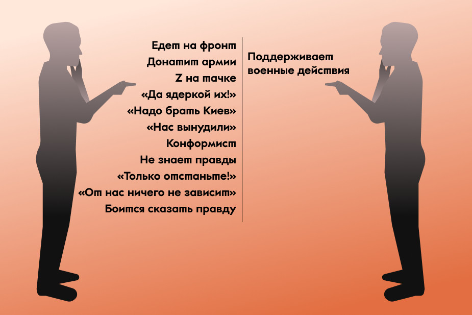 Те, кто выступают за военные действия, выглядят бодрее: пытаются рационализировать ситуацию, используя пропагандистские мемы про отравленную нацизмом Украину и постановку в Буче, говоря «если бы не мы, то на нас бы напали».