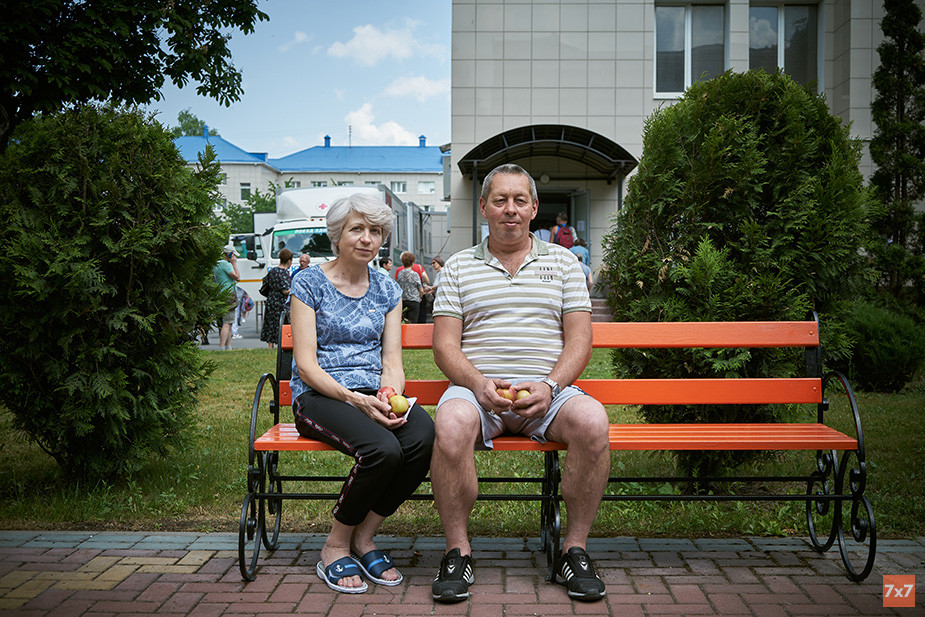 Своей очереди в столовую поблизости в аллее ждут Анатолий, Татьяна и Денис. Последний очень похож на певца Noize MC, но отказался фотографироваться из-за небритости.